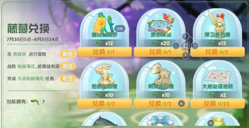 兑换说明(活动开放7天个藤蔓):6种装饰148个藤蔓;其他道具78个冰刺;最少参与满5天,可以拿满所有装饰;偷偷懒3天肝满就可以解锁全部图鉴
