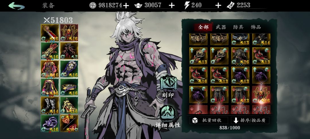 在不带狂肩的情况下可以把手套和裤子的刻印换成这样,这样可以装更多的混沌刻印和冷却刻印,混沌刻印提供的真伤转化和火刀的伤害成正比越高越好。