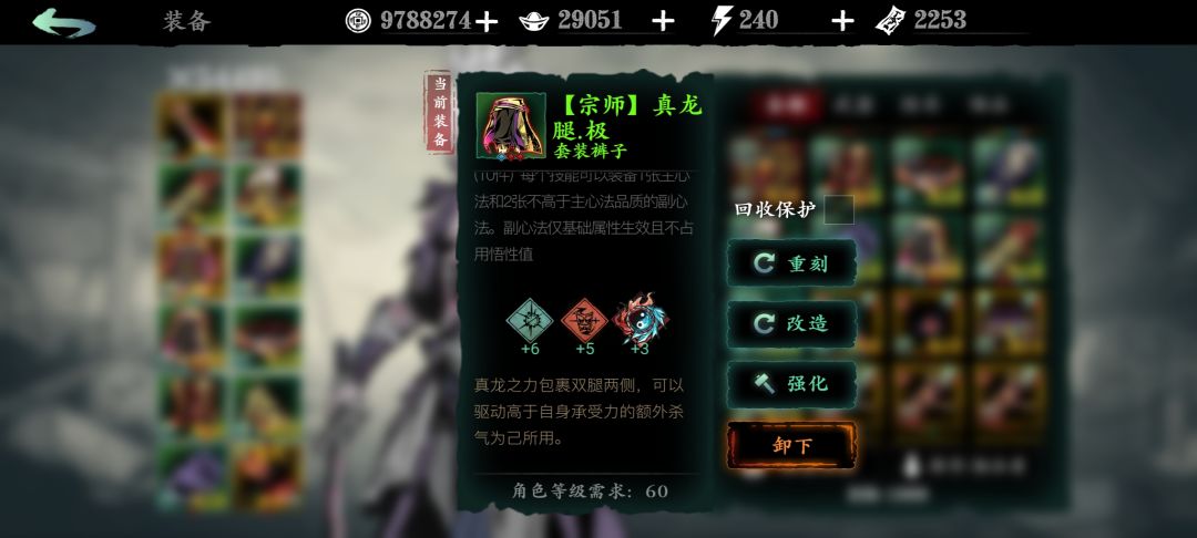 双龙散搭灭法鞋和狂肩,罪业戒指触发紫一狂龙效果激活真伤套和加速器套额外上一个钻心戒。