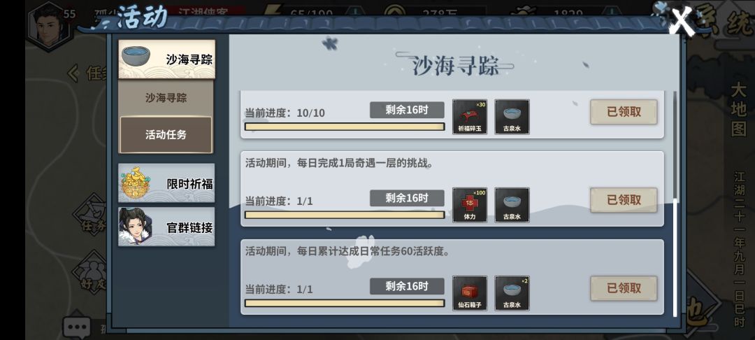 9.活动100体力,例如这次的“沙海寻踪”,这类活动松鼠基本没断过吧