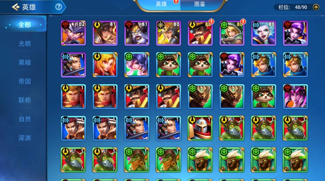 其次优先升级神话英雄的品质(在命运圣坛中升阶),神话史诗认不清的话,可以翻看英雄图鉴查看,最简单的判断方法就是看英雄都有几个技能,具体可以看这篇文章:《万界英雄》之阵容选择篇
