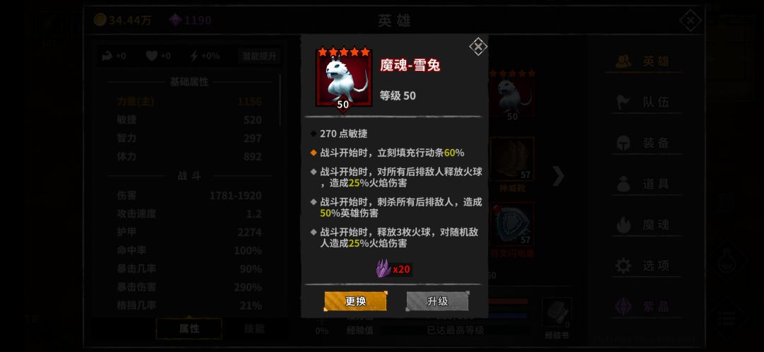 魔魂:我和飞翔大佬的偏好不太一样,我更喜欢雪兔,大佬用的石头人。雪兔作为主魂入手,两个后排攻击魂,一个随机三火球,注意,这里有两个注意:1、攻击魂一定是要造成直接伤害的魂,否则无效。