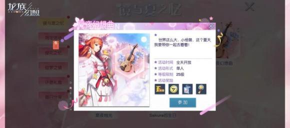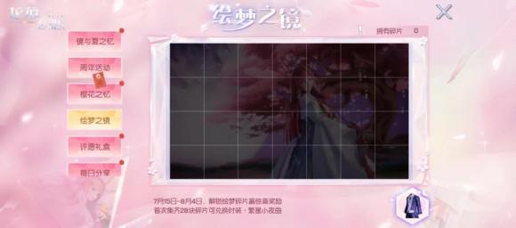 7月15日~8月4日期间,绘梦之镜活动限时开启!当达到指定活跃度,即可获得绘梦碎片,收集并填充绘梦碎片,即可获得金币、萤火之夏礼盒,完成绘梦之镜即可永久解锁双周年唯美时装·繁星小夜曲哦!