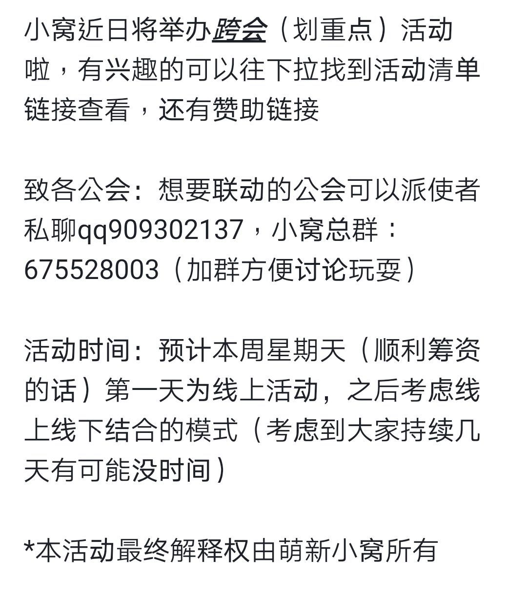 萌新小窝跨会活动邀请函