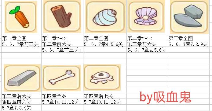 此为吸血鬼总结的农场升级材料掉落详细出处(前七章)