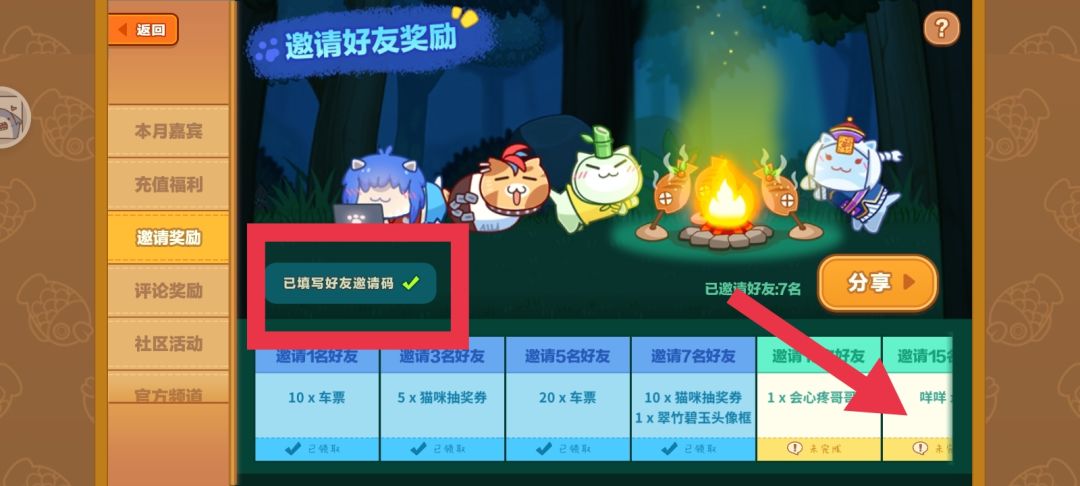 注意一个人只能写一个邀请码,邀请15人解锁的咩咩可以通过抽奖得到