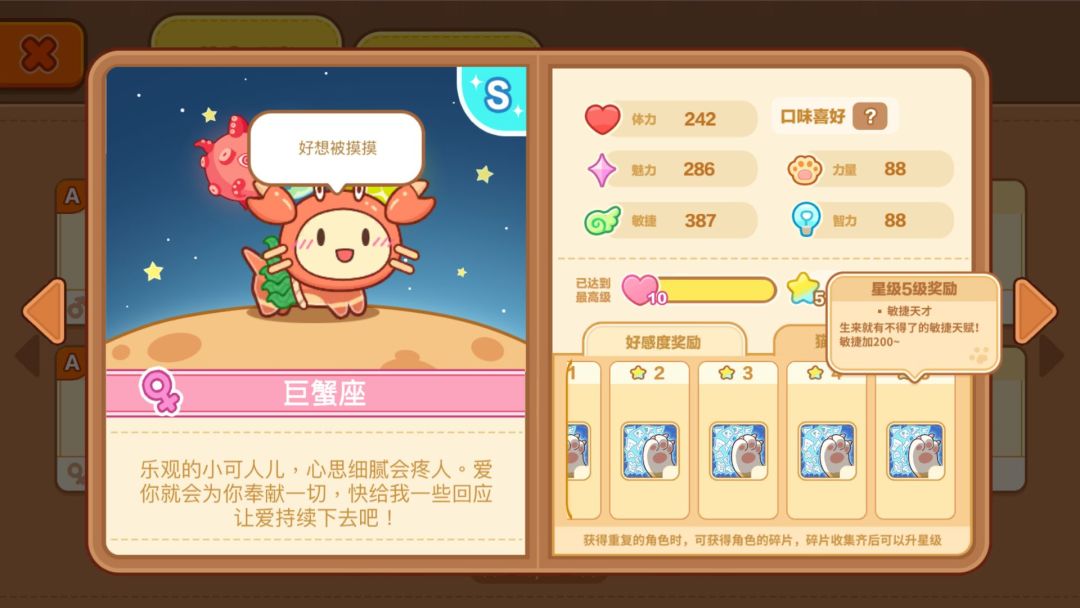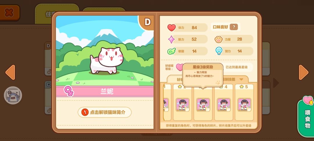 ⑤猫咪提高好感度等级/星级可以增加基础属性