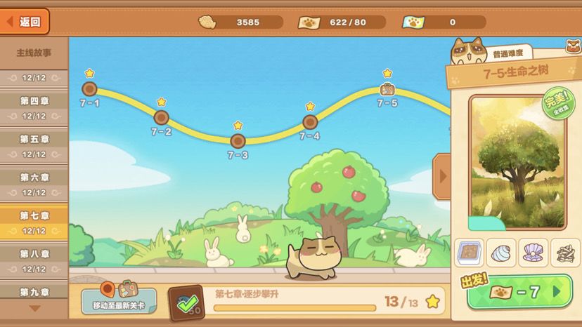 目前还有没有材料副本,只能选择比较容易且性价比高的章节副本了!基本一个副本100左右小鱼干,而且要求较低,不是很考验翻牌的技巧!