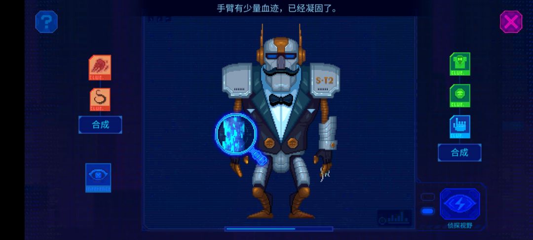 佩里夫人的机器人管家线索分布图(分为普通模式和侦查模式)一共六处,剩下的就是合成线索了