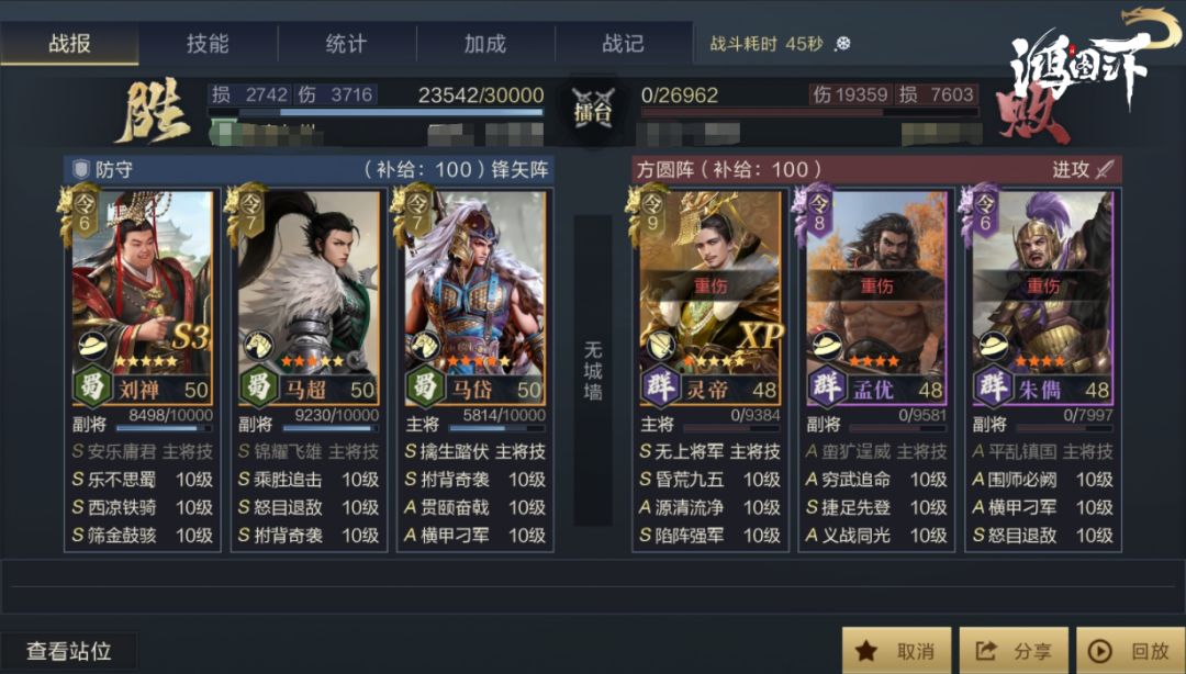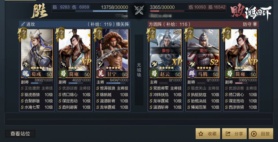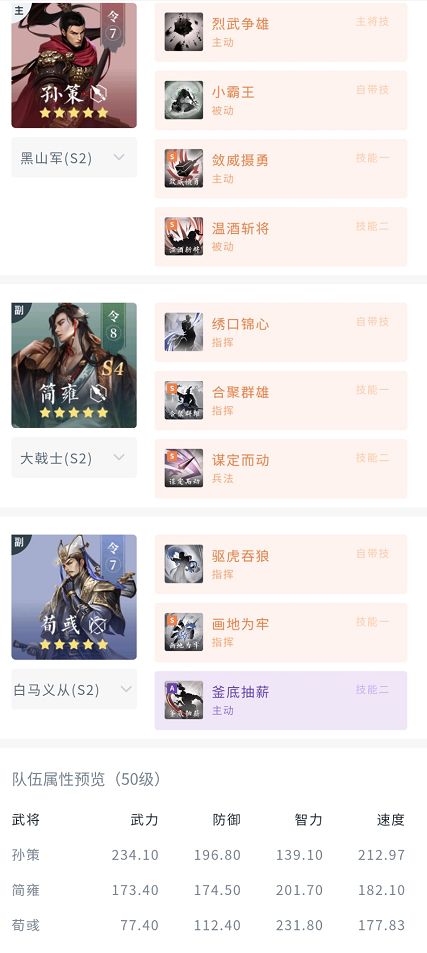 除了筛金鼓骇外,队伍武将和整体技能都没有太高的门槛,但双核需要较高的红度支撑速度与武力。