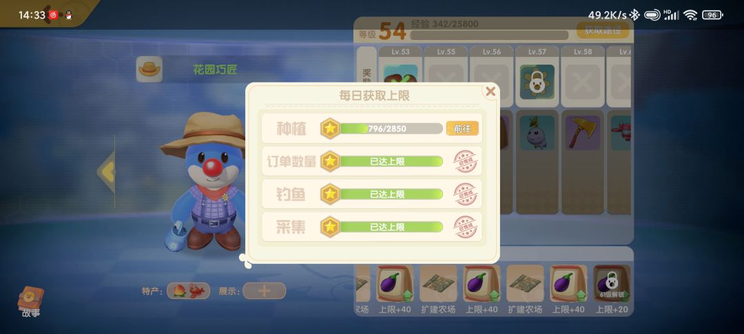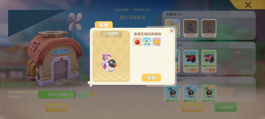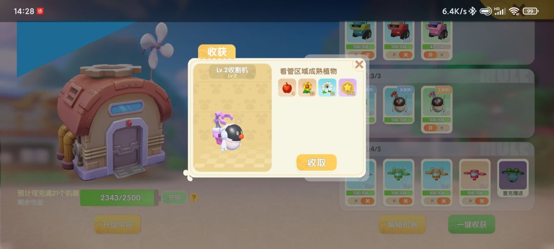 收割机自动收获了向日葵*25,但收割机经验依旧为796,SMC经验槽也没涨。