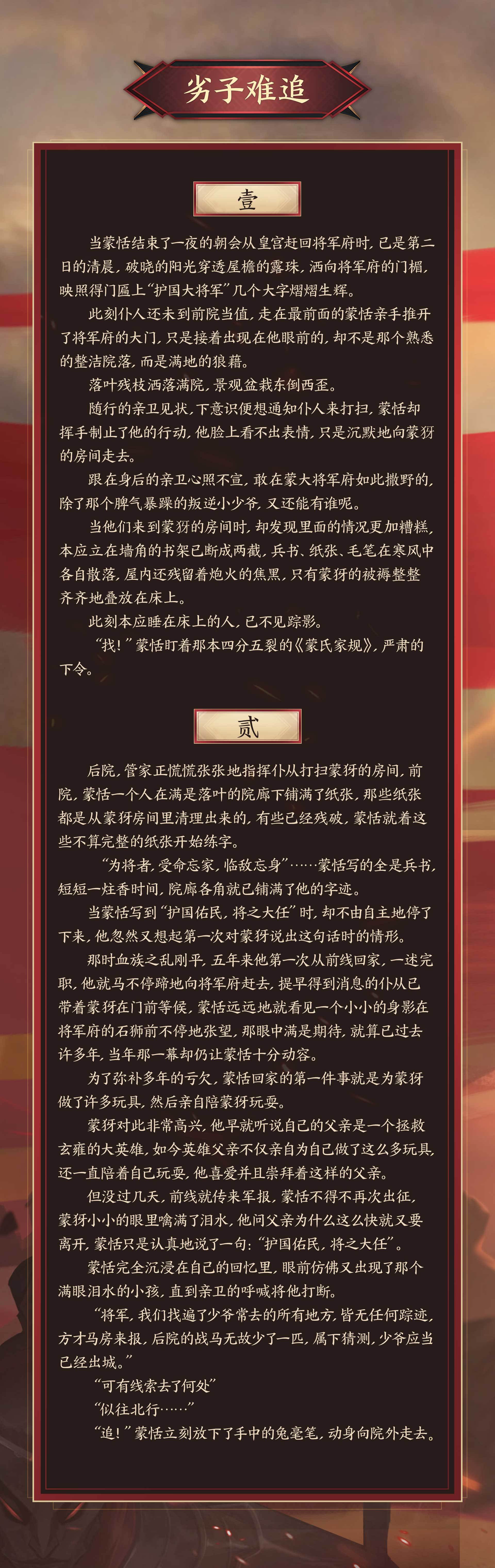 想知道蒙恬将军中途是如何失意踟蹰,又如何于水火之中拯救玄雍的吗?快戳下图查看吧~!