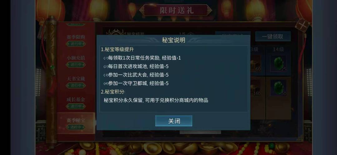 ②第四张图就要说一说这次活动新增加的密保功能,这里面任务很好做,就每天上上线就可以了,密保积分能换很多好东西(而且他还是永久保留,你可以留着到后面再换有更好的东西