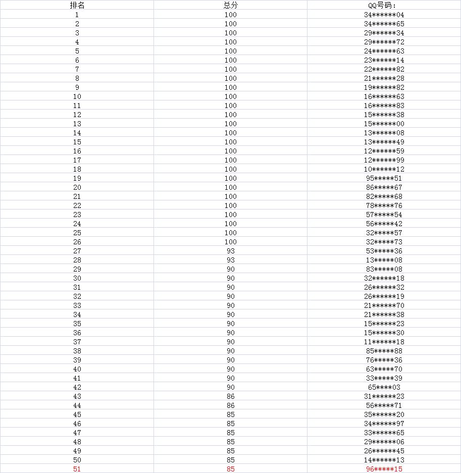 1、本次测试原定50名,但是有同分的情况,考虑到公平,所以第51名也纳入抢先测试行列.