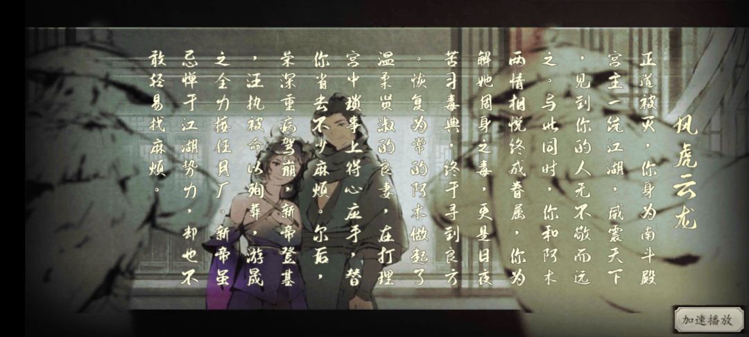 蓉城遇到阿木,带我们去南斗殿见烈行云。第一个任务是截杀阎心,第二个任务是灭连环坞。连环坞打完陪阿木去洛城看她娘,城门口遇到魏天啸,明明是被我一招秒的屑偏偏变成了我被重伤。醒来去文成处对话,再去南斗殿。后面就是剿灭三派,回来后给我焚天火典,这时候云丝丝让我陪她出去走走(做了云丝丝支线)。这里存档!