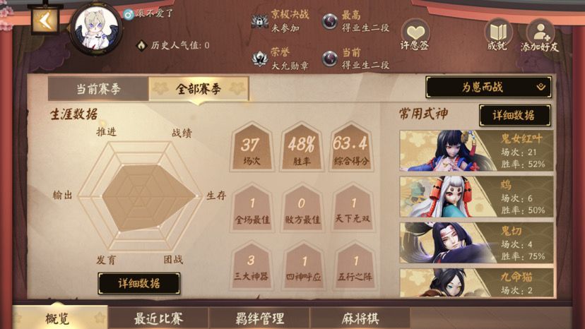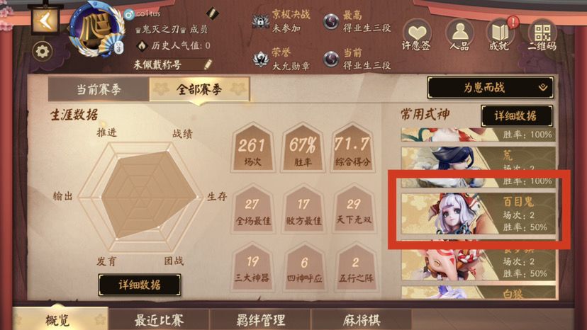 我个人为崽而战的数据,百目鬼第二局呵呵