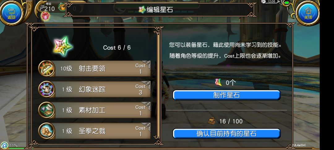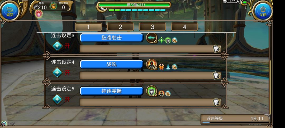 技能多的话或者星石多有多余技能点可以再加个剑闪技能,剑闪技能加10%拔刀伤害和25%武器ATK,但是我感觉增益buff多了放不过来,一会这个时间没了一会那个时间没了