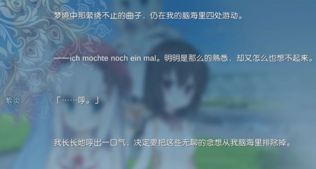 (1)ich mochte noch ein mal:游戏开头的歌词,应为德语,大意是“我想再爱一次”