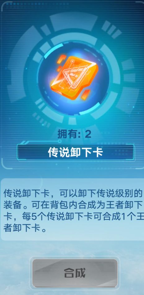 (2)5张传说卸下卡可以在【背包】里合成一张王者卸下卡