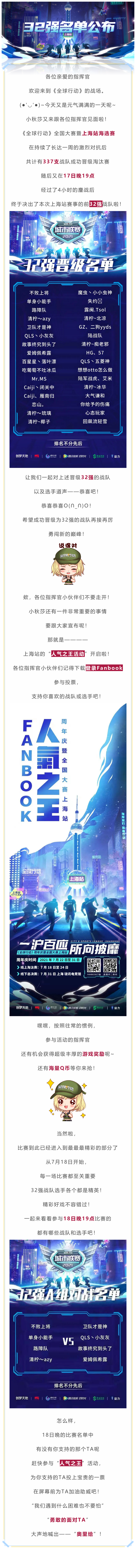 《全球行动》全国大赛暨上海站海选赛32强名单公布!
