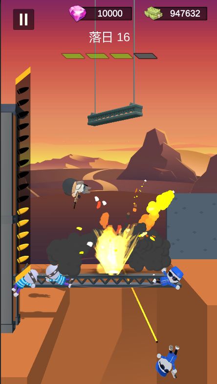 游戏中设定了大量的道具,每一个关卡都有可利用的地形或借助的道具,比如子弹可以反弹、射击炸药桶可以爆炸等等,注意利用地形和道具去击杀各种敌人。