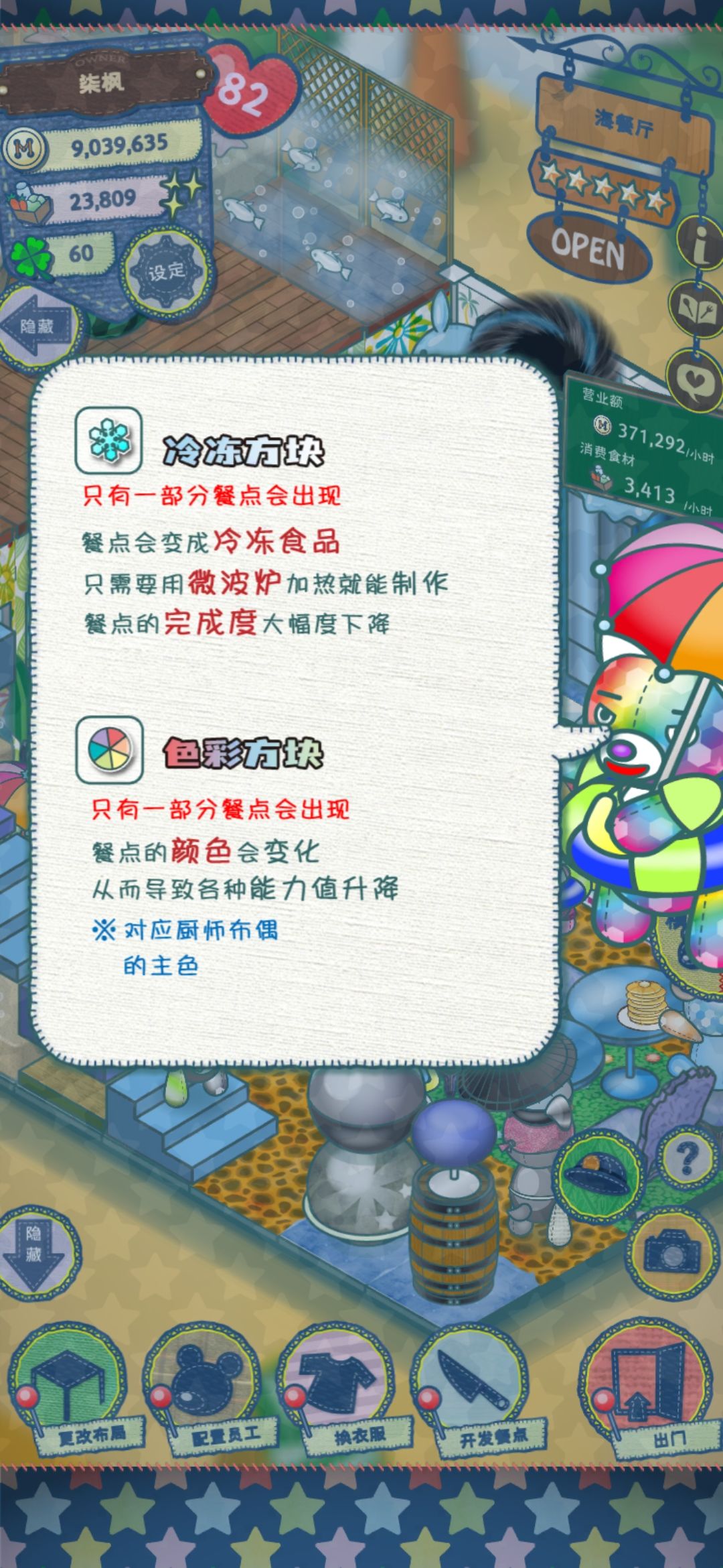 2.冷冻方块:减大量完成度,减50%冷却时间,减30%金钱。(前期不建议点,根据自己喜好和潮流作选择)