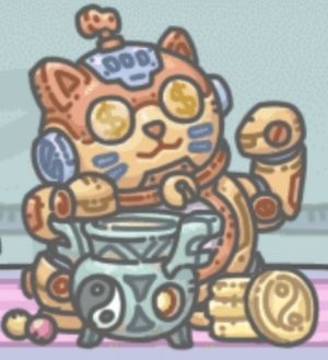 6、贩卖机解锁到第2种形态后,可以花200白蝌蚪购买招财猫(位置在蜗牛商城里,下图),一次最多可以存1000白,每天收益50白蝌蚪。一般是周五存1000白蝌蚪,下周四砸碎招财猫取出本金、周活动物资和10量子招财猫蓝碎,一周可以拿300白蝌蚪。(关于贩卖机变形,需要把一次性的特殊物品购买完,过段时间它就会进货。售卖机一共有3种形态,抱着肥猫的售卖机就是最终形态)