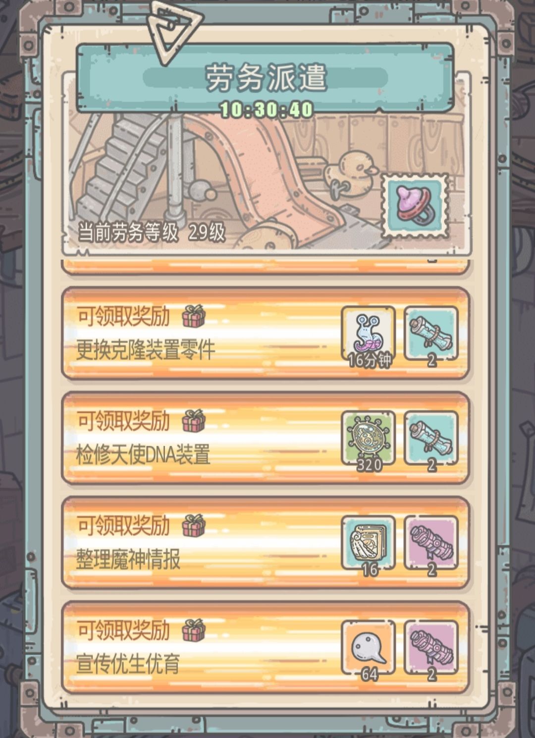 7、子孙劳务派遣。有概率刷出给白蝌蚪的子孙任务,也可通过消耗白蝌蚪刷新子孙任务。根据任务等阶不同,白蝌蚪奖励不同,且不受伙伴合同等级影响。如下图: