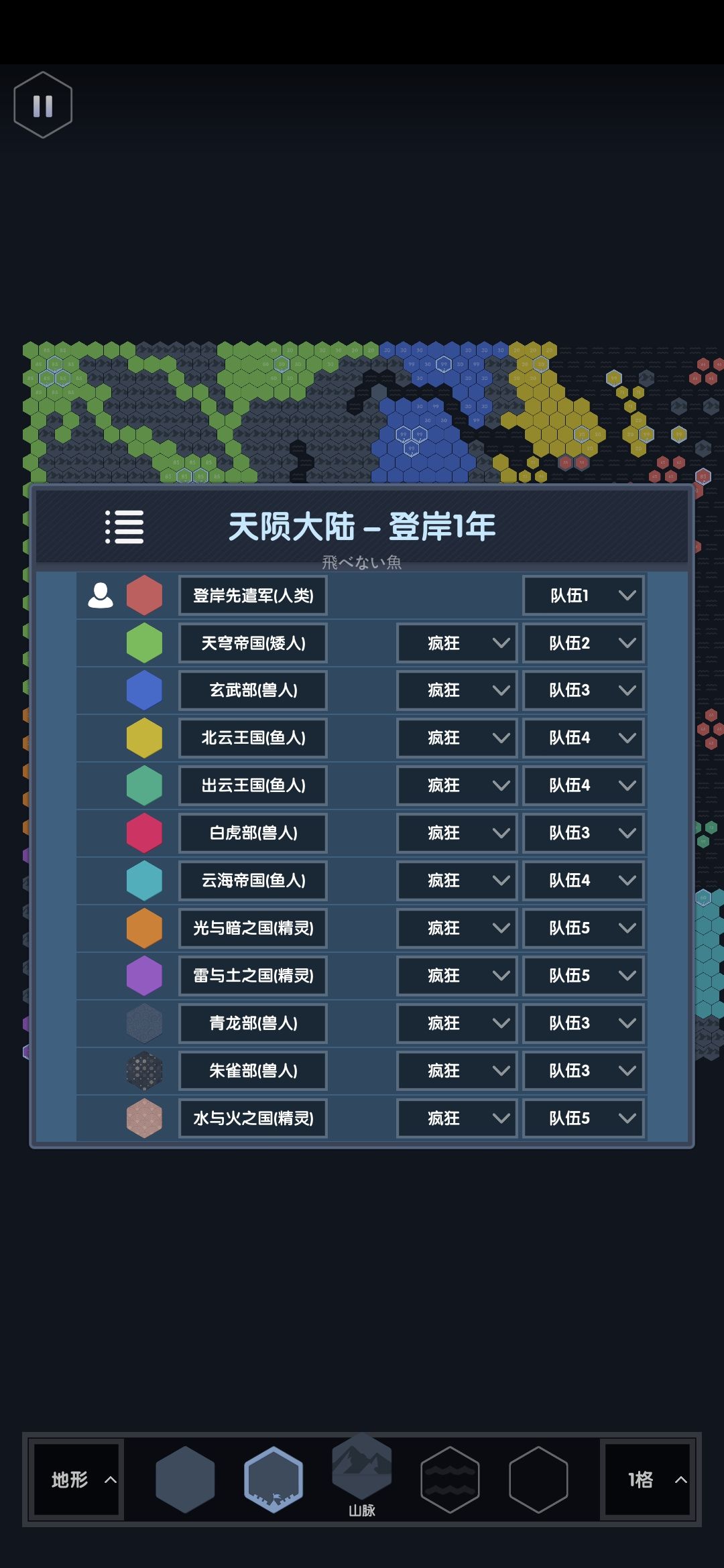 本次地图相当于上一次的前传,设定为刚登陆一年左右,因此人类开局并没有多少土地,且无任何盟友,难度较高。