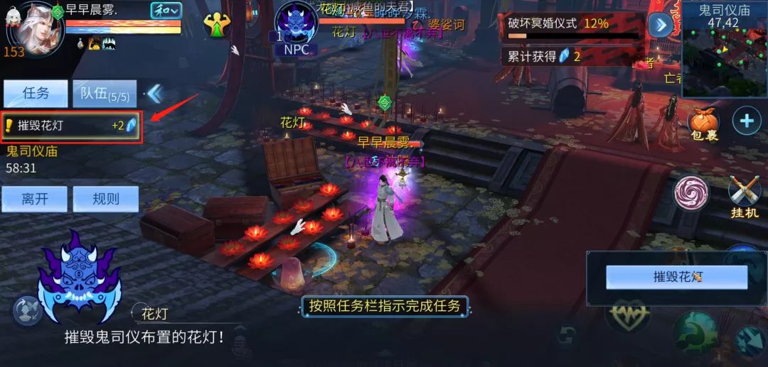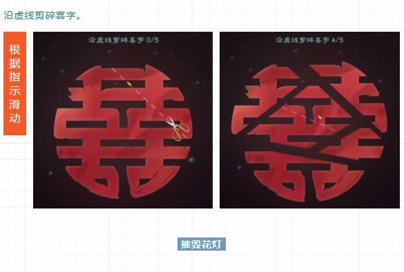 小任务分别有:超度参与冥婚的亡魂、剪碎喜字、摧毁花灯等。