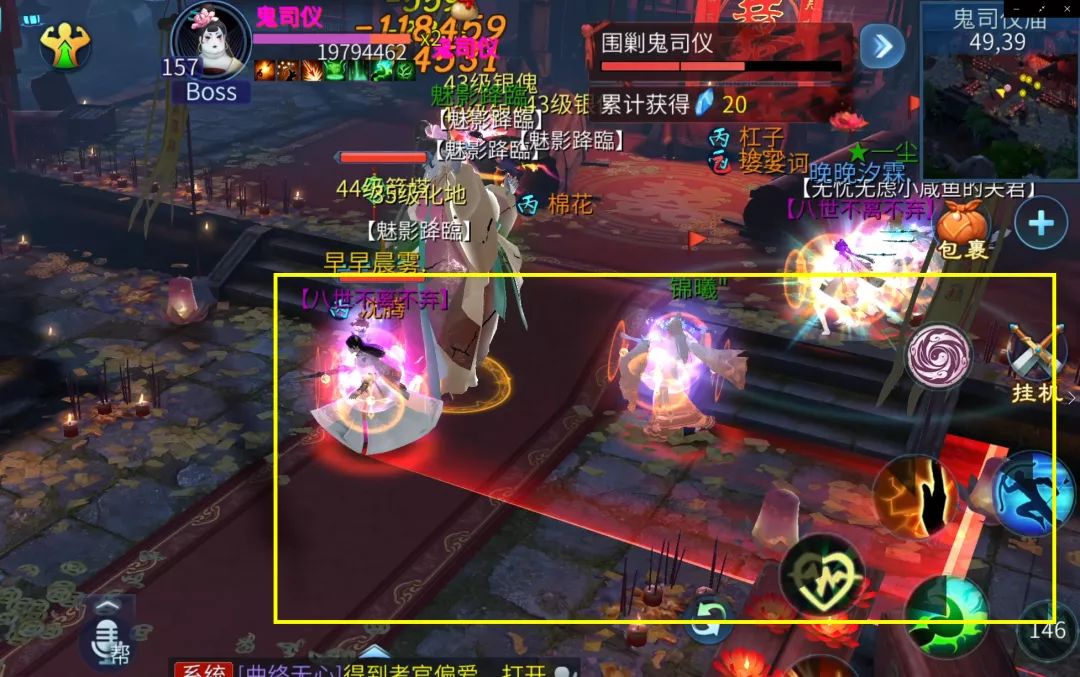 此时,蓝色光圈和红色光圈的玩家需要站到一起,否则会受到伤害。输出高的玩家可以尝试直接击杀鬼司仪,输出较低的小伙伴们建议抱团。
