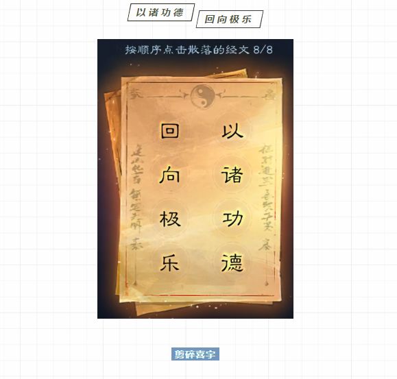 超度参与冥婚的亡魂:需要玩家按照一定的顺序点击散落的经文。
