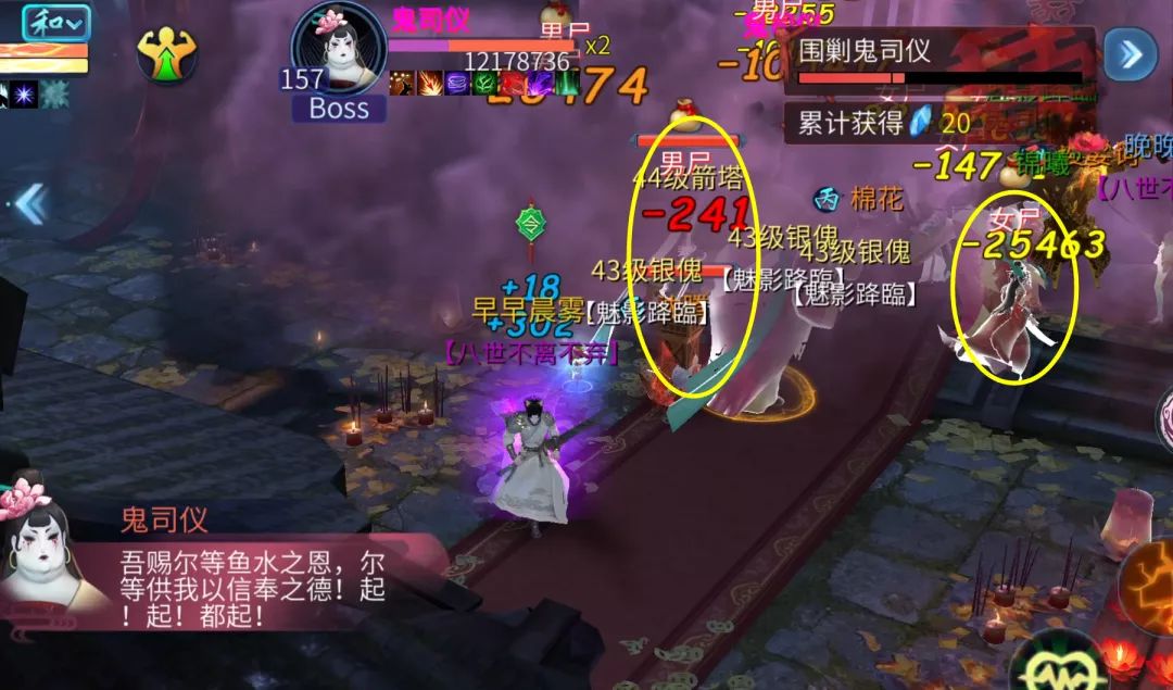 气血降低后,鬼司仪还会召唤男女尸,注意快速清掉即可。