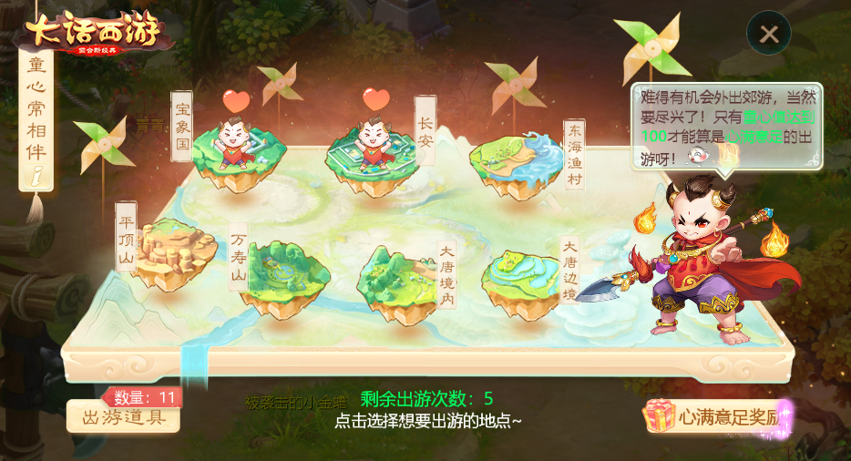【童心值】达到100时,玩家可以“心满意足”地结束出游;