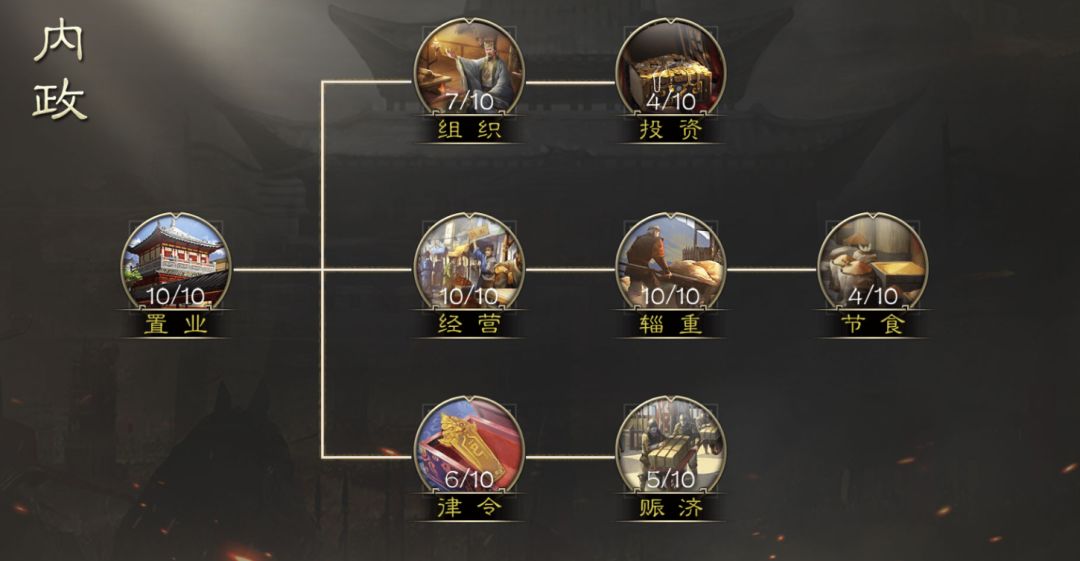 内政科技就较为注重于种田方向了,【置业】科技用于提高城池产业的购买上限,配套【经验】科技同步提升城池产业产量。