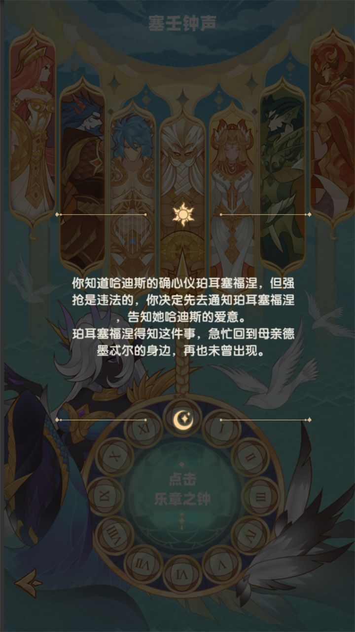 那么我们要如何展开这次奇遇呢?非常简单,只需要在塞壬钟声的界面,点击乐章之钟,塞壬就会拨动乐章,看着指针慢慢划过神明画轴,指针停留之时,便是奇遇展开之际!