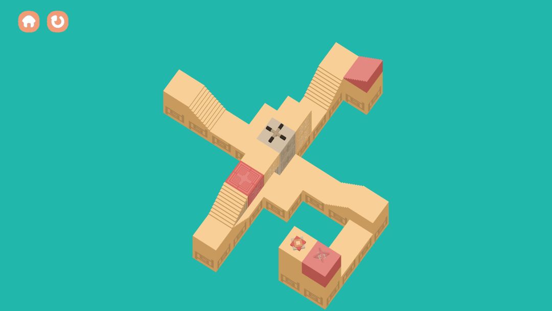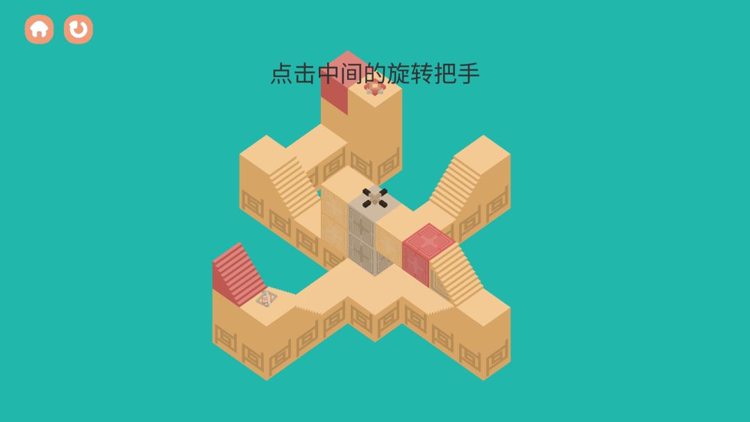 再转动一次轴轮,走上轴轮的红块,此时转换方向会发现两块红块在一起。