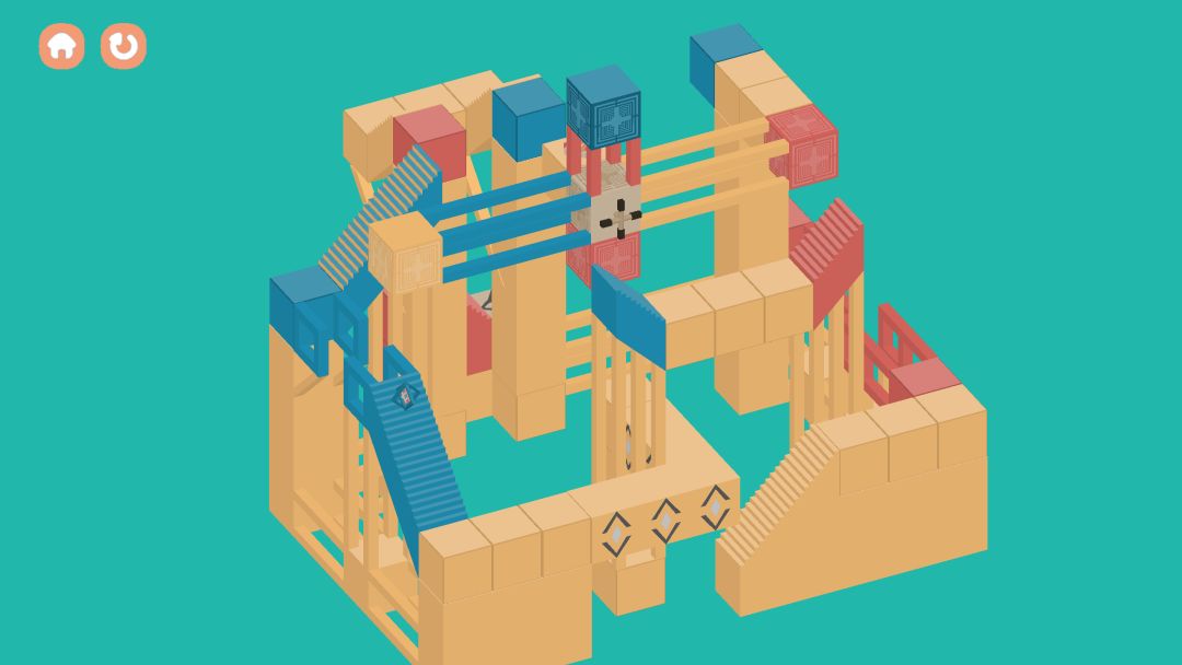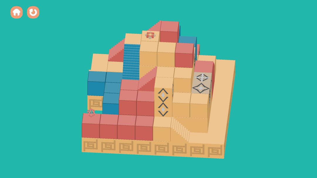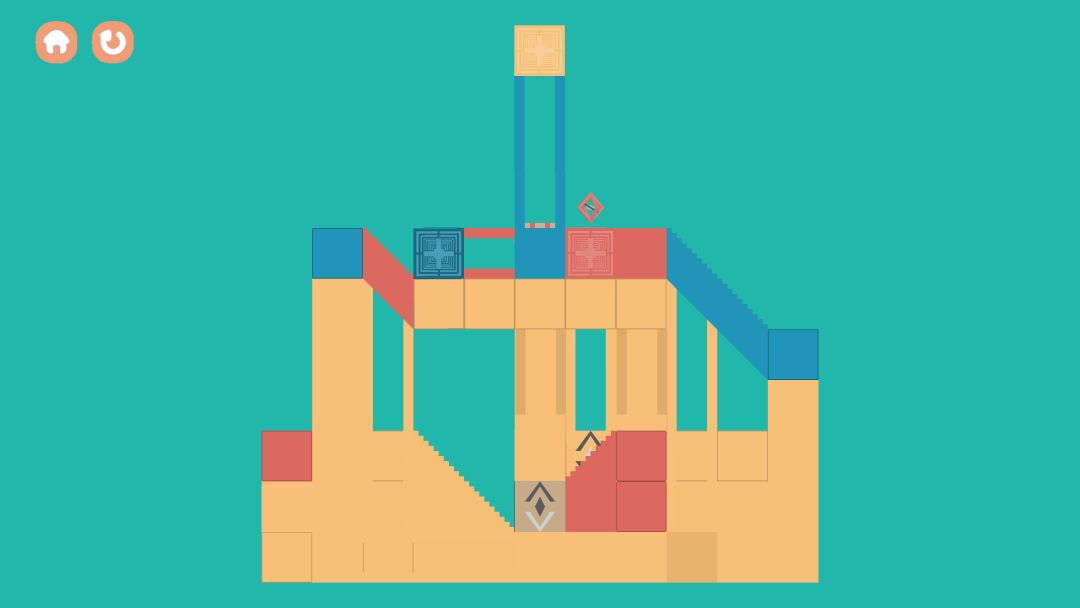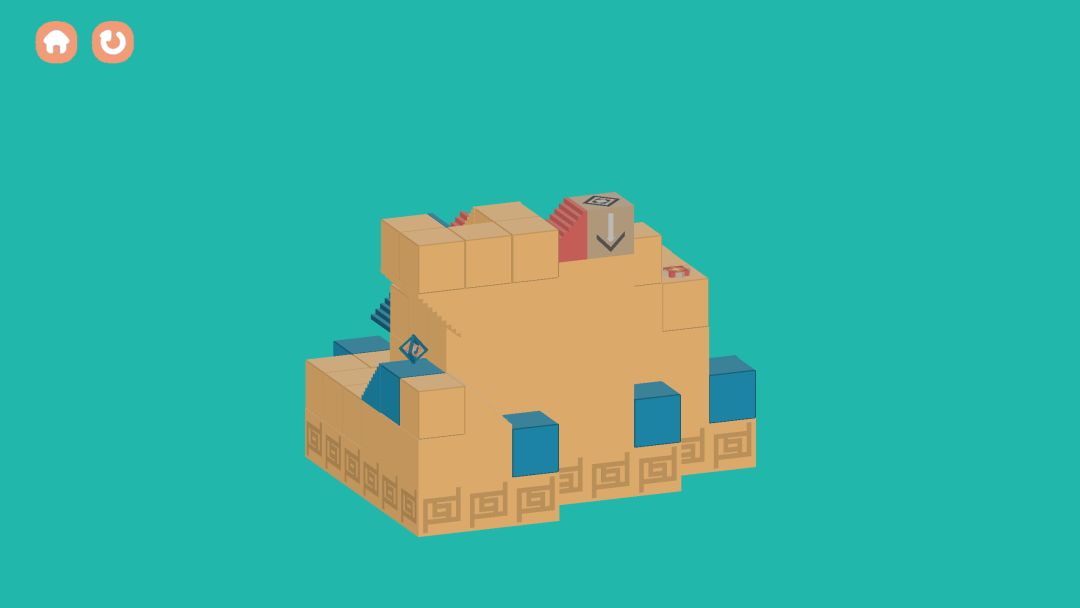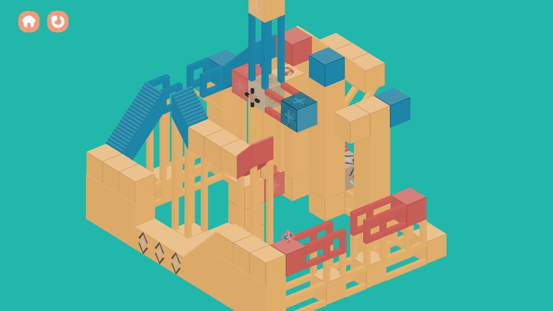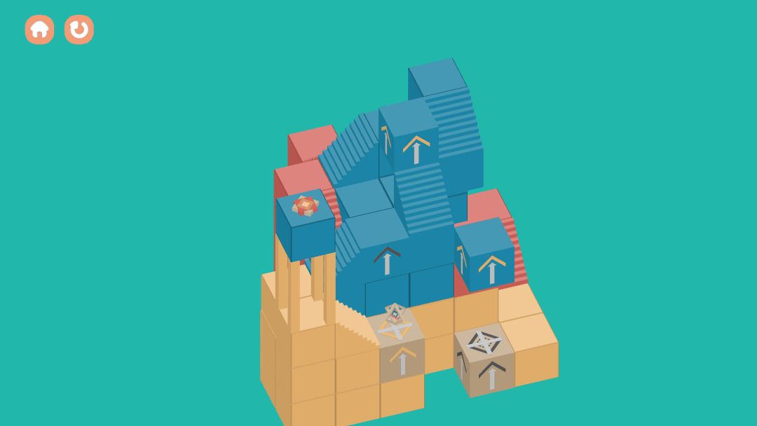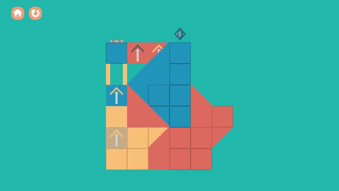 4.向上走(只走一块篮阶梯),继续换方向,走到蓝块