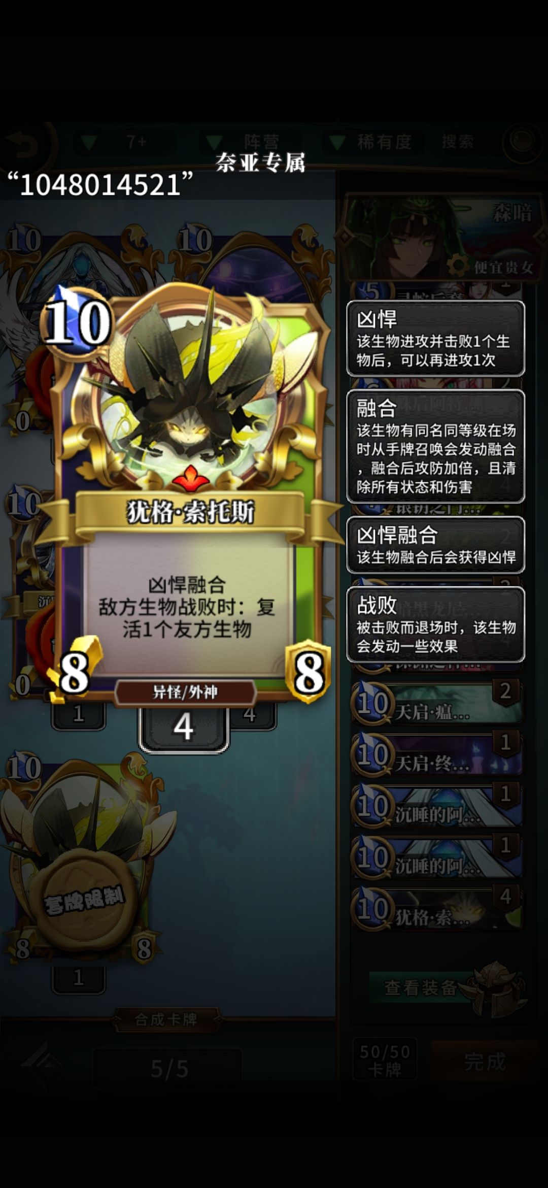 神卡,不要吝惜生物,关键时候上一个外神印可以让你的小屁股瞬间增大干翻一路。也可以用来毒神