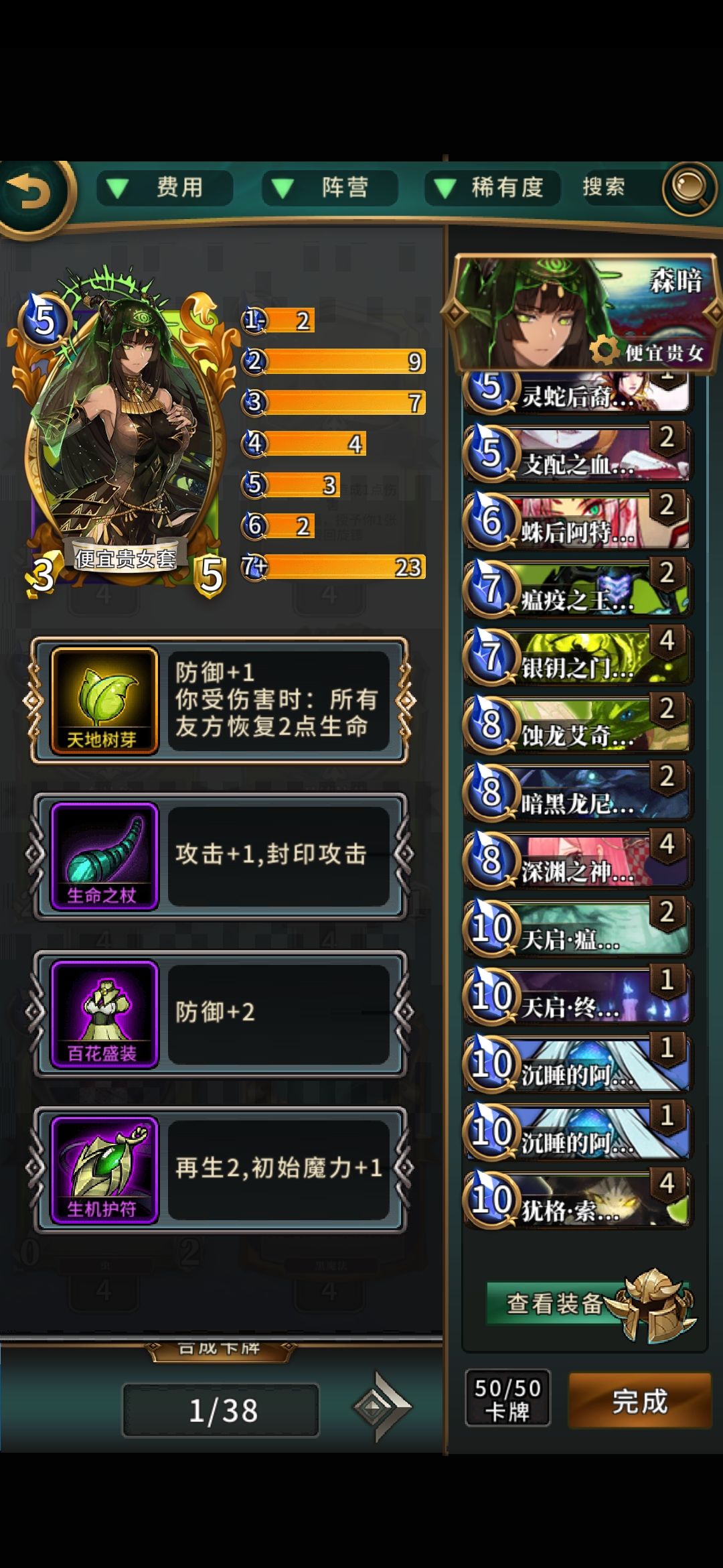 海拉,神卡必带,四张拉满,可以拉优格,可以被幽灵公主检索出来,女王可以触发支配之血。