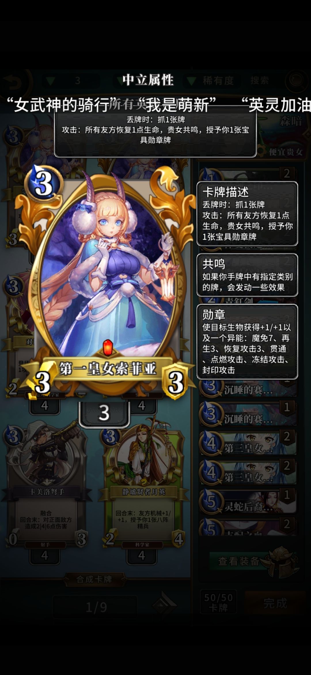 皇家女仆,用来检索贵女,可以帮助前期摸到大皇女和三皇女,压缩卡组