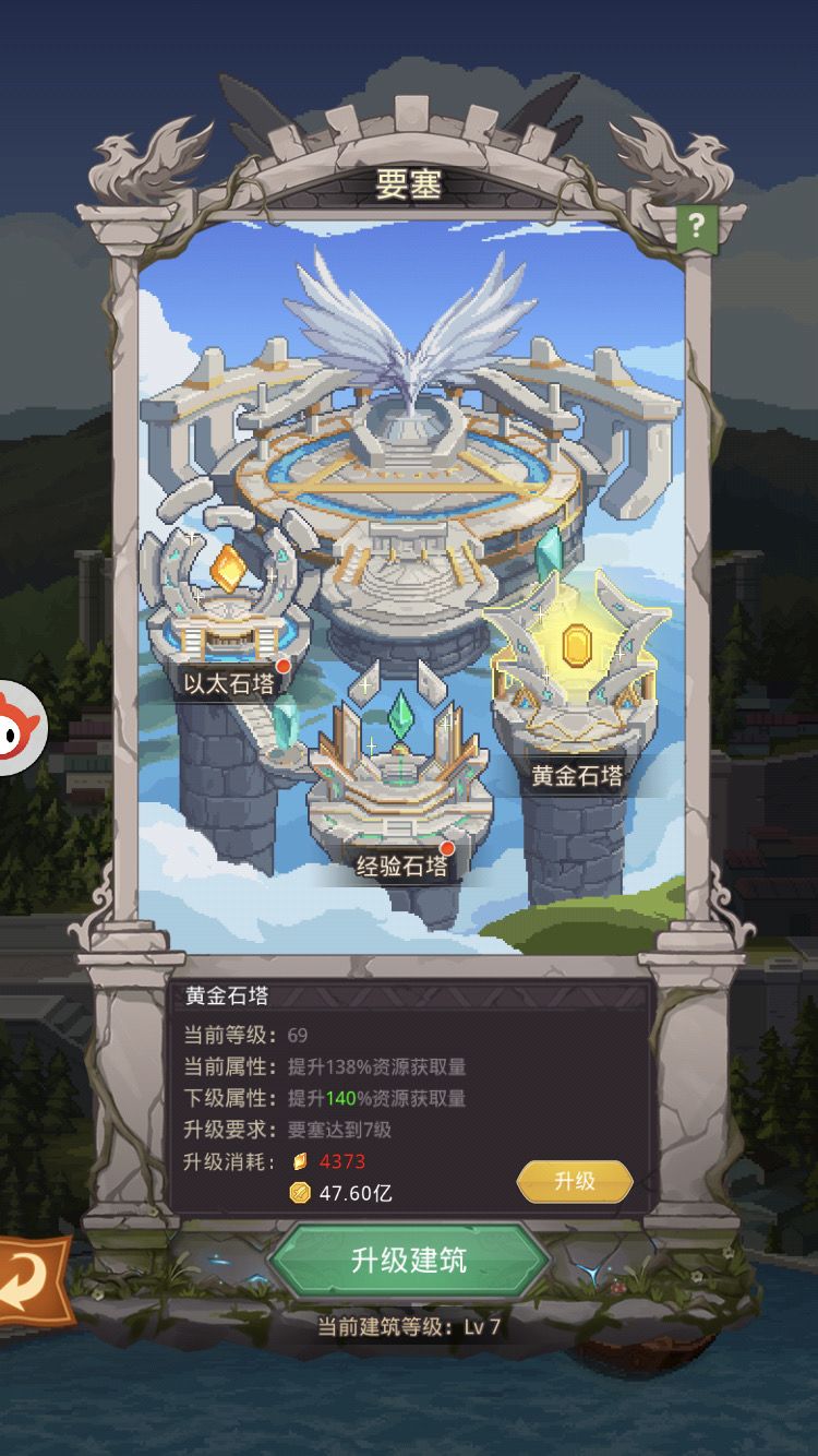 金币塔升70就差不多了,氪金可以往80升,但必要性不大了,70级都够做很长时间的小目标了,优先升金币塔