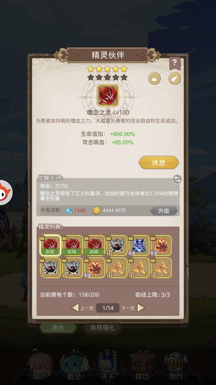 其他精灵觉醒材料可以分解换佣兵,如果佣兵也基本满足需求就开始换树液,小目标150级抗暴和100级削血。