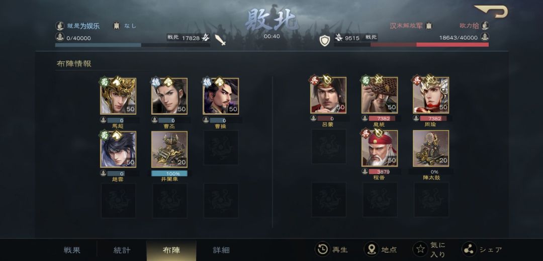 最后附上战报截屏(日服的曹丕经过了削弱,但削弱幅度不大,四骑总体强度仍在)
