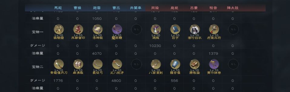 我们把上面的武将宝物搭配汇总一下