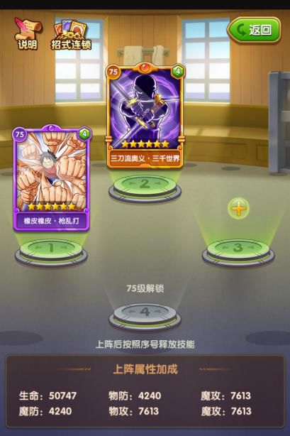 援助招式功能中,船长的伙伴阵容可以装备多个伙伴招式卡片,装备的卡片会增加全体伙伴的属性。