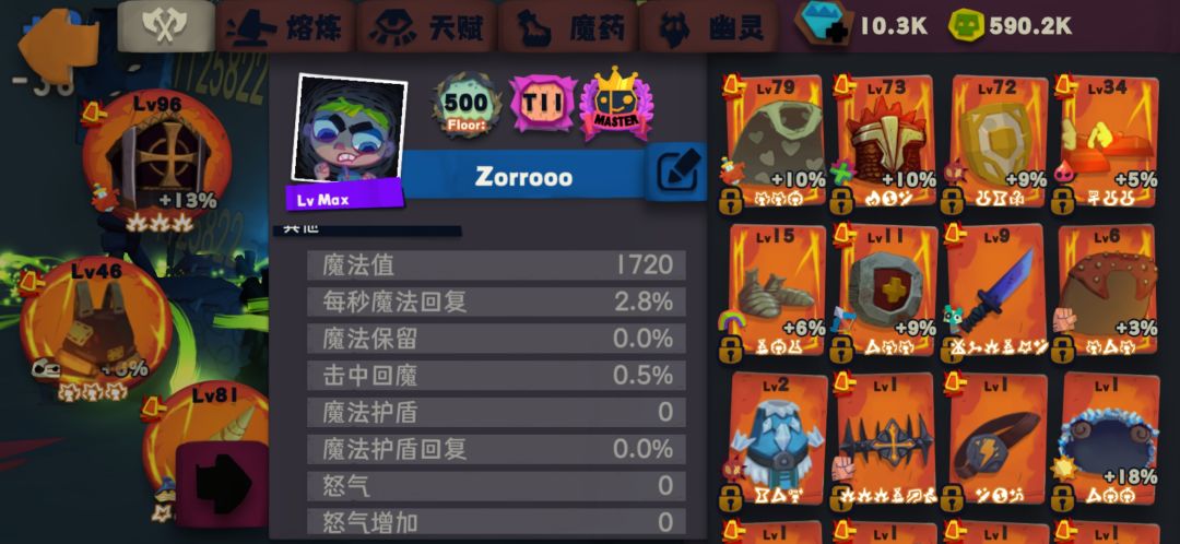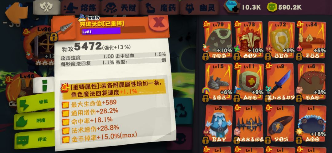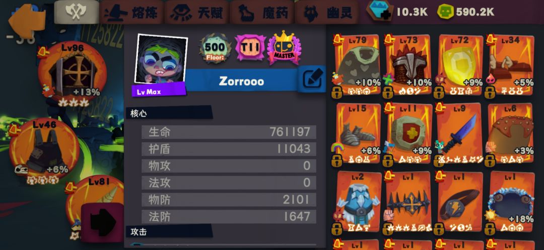 装备很垃圾,重铸没有一个好的,套装也没凑,所以救赎对装备要求并不高,重铸理想的话是6孔头、披风、鞋;暴击或爆伤或者魔法衣服、武器、盾。