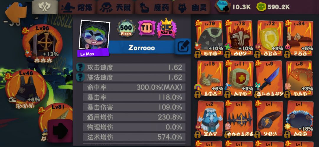 面板数据是叠加了状态的,暴击低了一点,准备做个暴击武器再加一点暴击