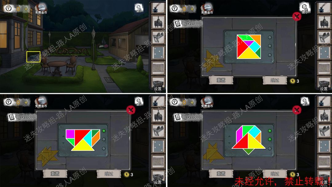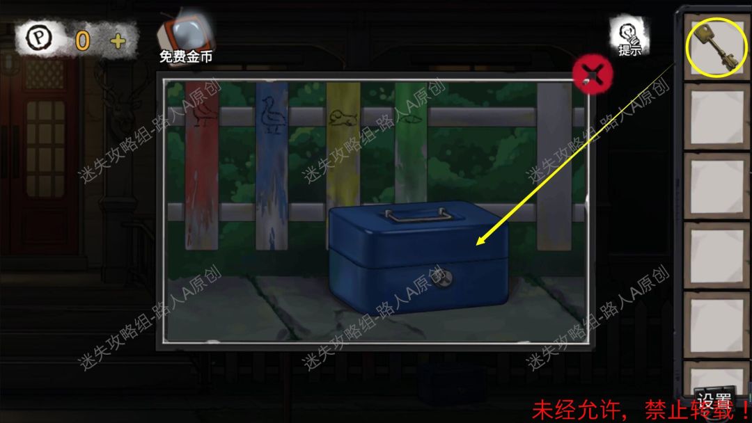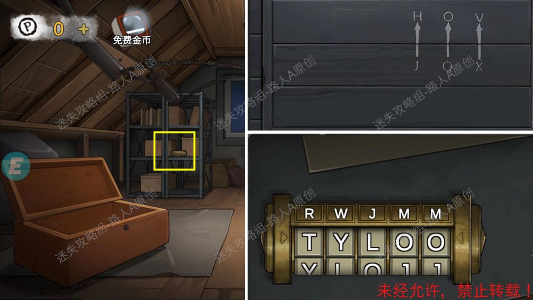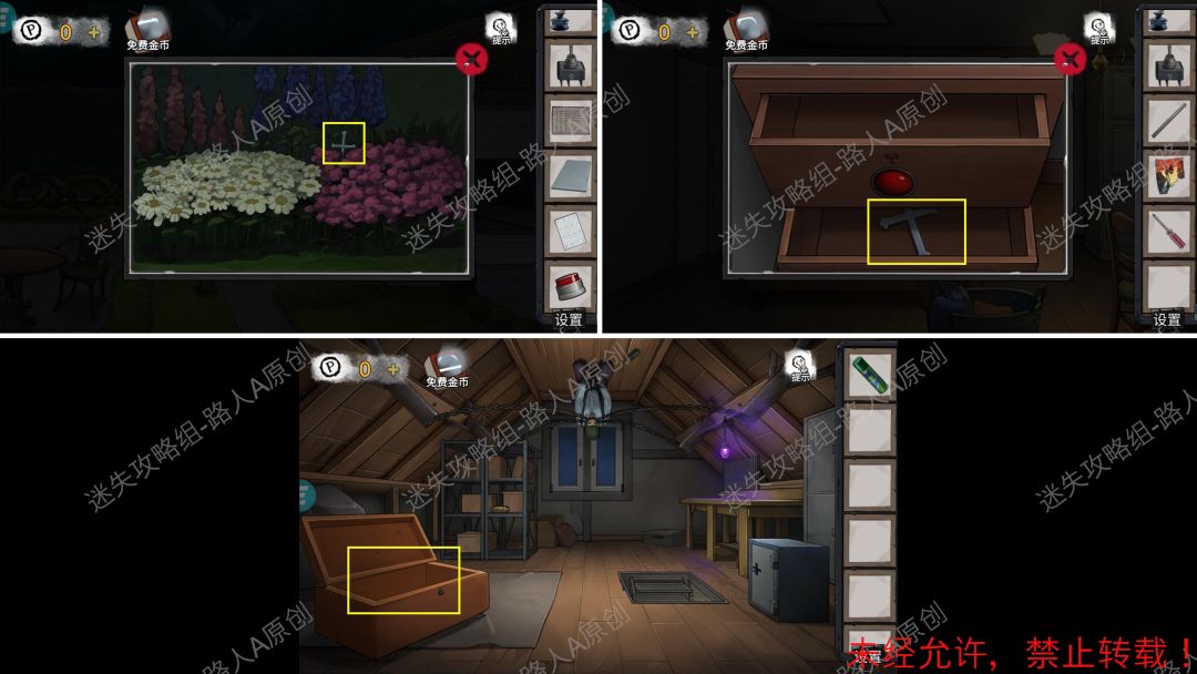 1.根据围栏的线索,解开土坑里的盒子密码,获得【三角钥匙】。1.1、1.2