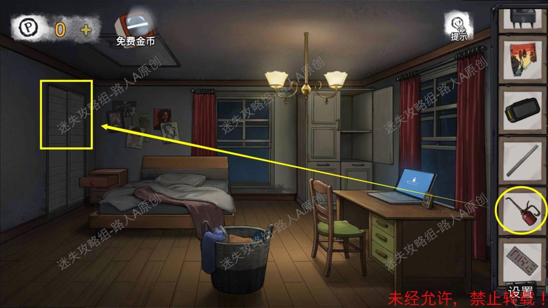 31.注意衣柜上的字母【DEER】,然后用【打火机】点燃柜子上的蜡烛,获得线索。31.1